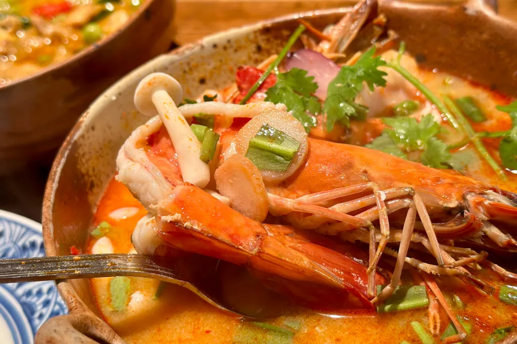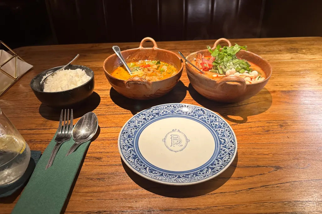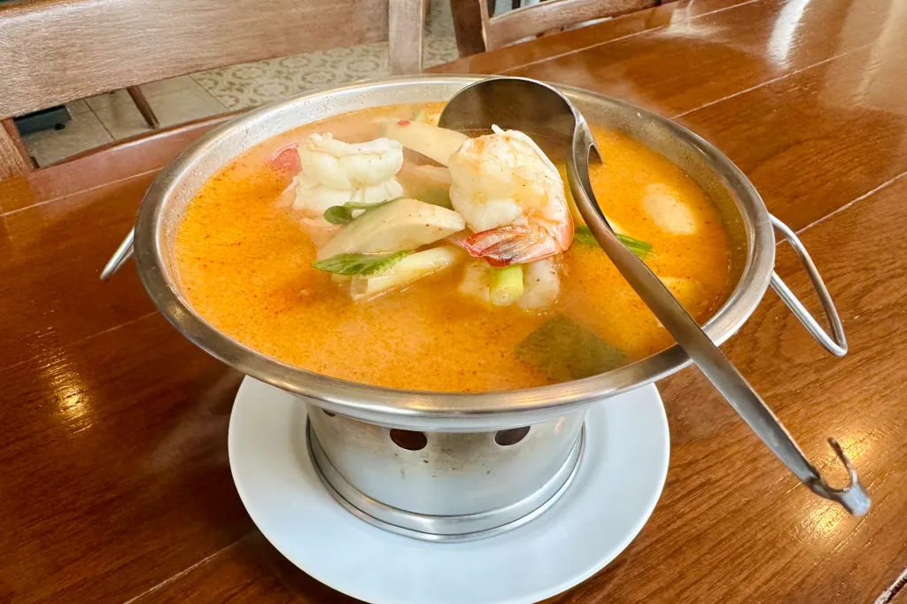 注文したのは、タイレストランの基本であるトムヤムクン。そして、ここタイではそこまでメジャーではないが私が好きなグリーンカレーも合わせて頼んだ。