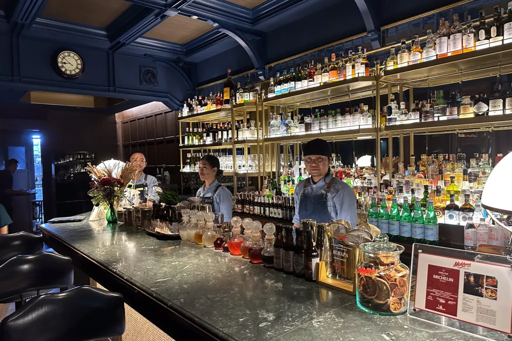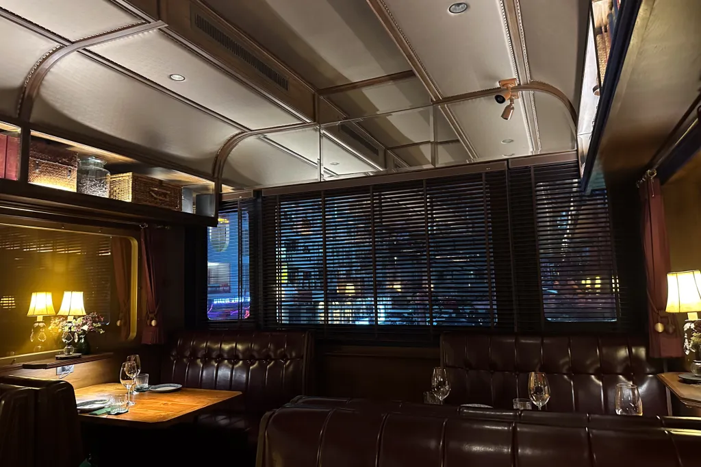「Burapa Eastern Thai Cuisine & Bar By Sri Trat」の店内は、鉄道の車両をイメージした造り。雰囲気だけでも十分に楽しいが、もちろん料理も抜群においしい。バンコクの『ミシュラン・ビブグルマン』掲載店なので、味に関しては“間違いなし”とお墨付きだ。
