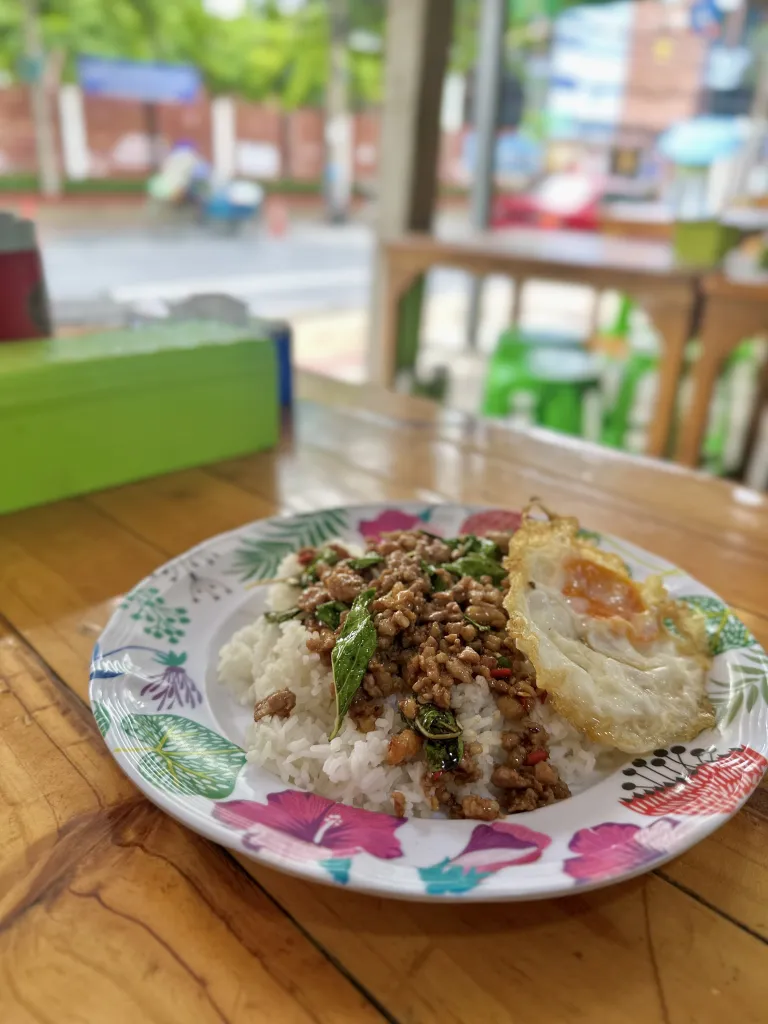 ドンムアン空港を出てすぐの屋台ガパオライス