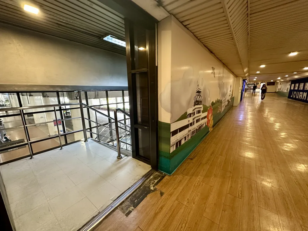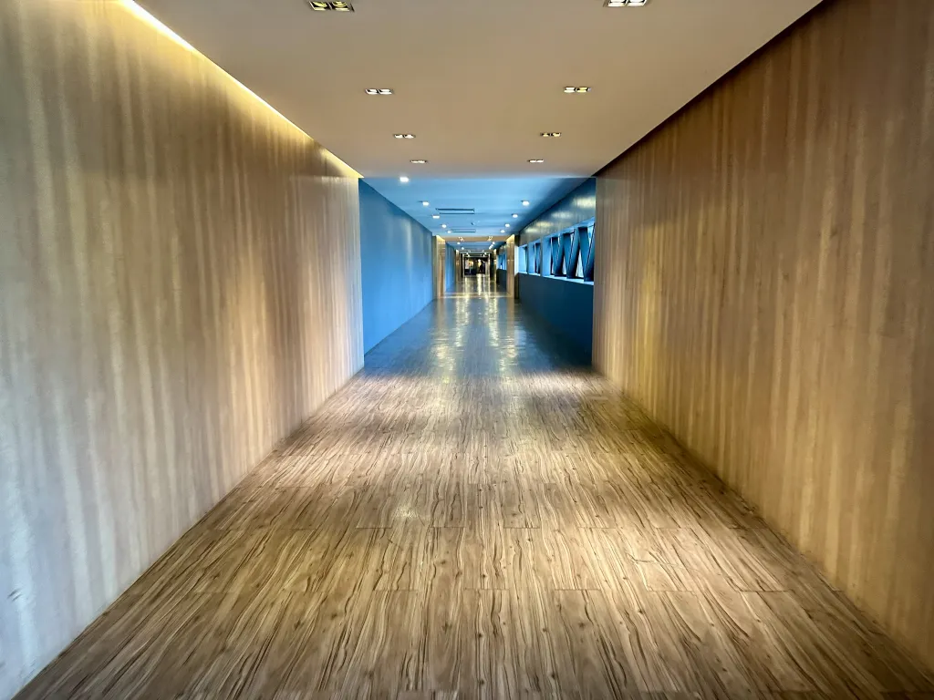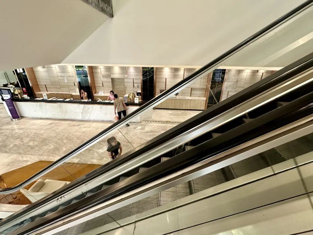 ドンムアン空港(国際線到着ゲート)から直結の唯一のホテル。オレンジ色のAmariのロゴが見えるはずだ。下の写真は空港からホテルまでの4カット写真。歩いて5分くらいでホテルのロビーに到着する。エレベーターもあるので、足が悪い方でも大丈夫。