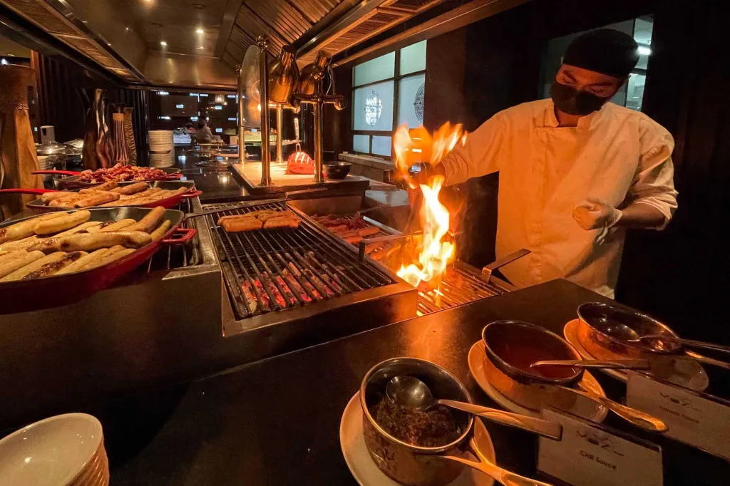 その場で焼いてくれるアツアツのソーセージを頬張りながら、プールサイドの心地よい風を感じる朝。少し日焼けには注意が必要ですが(笑)、最高の一日のスタートが切れるはずです。