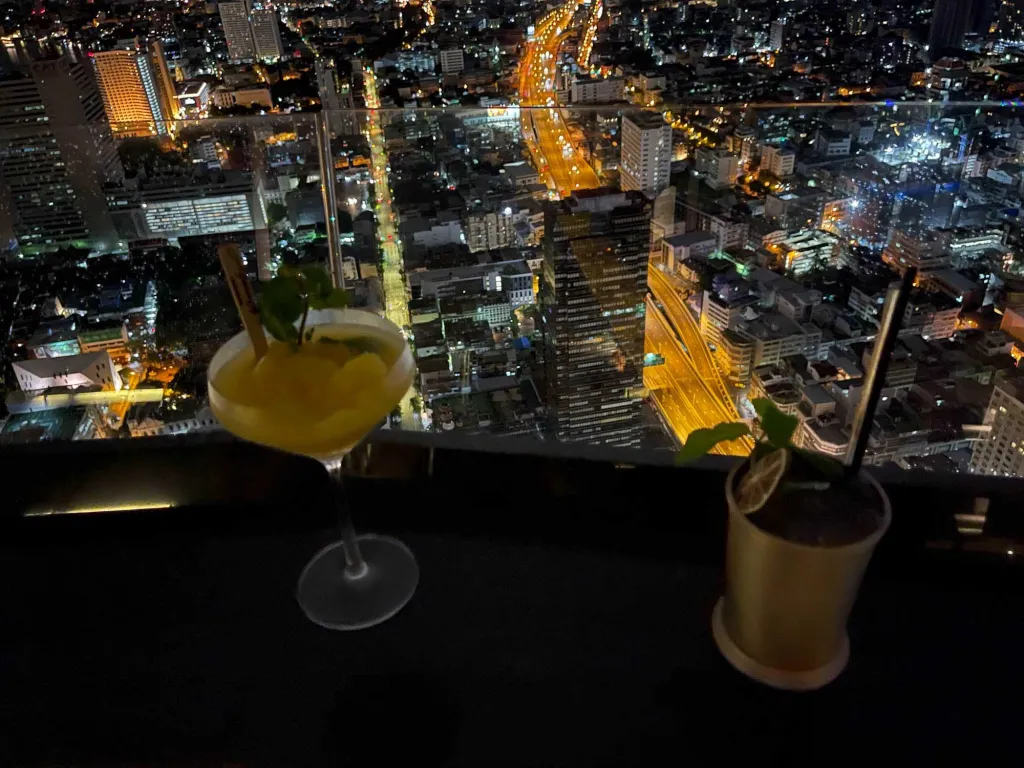 宿泊客であっても特に割引があるわけではありませんが、この場所で夜景を見ながらカクテルを飲む時間は、まさに「プライスレス」。一杯3,000円〜5,000円ほどとバンコクにしては高価ですが、澄んだ空気の中で眺める発展途上の街の光は、一見の価値があります。