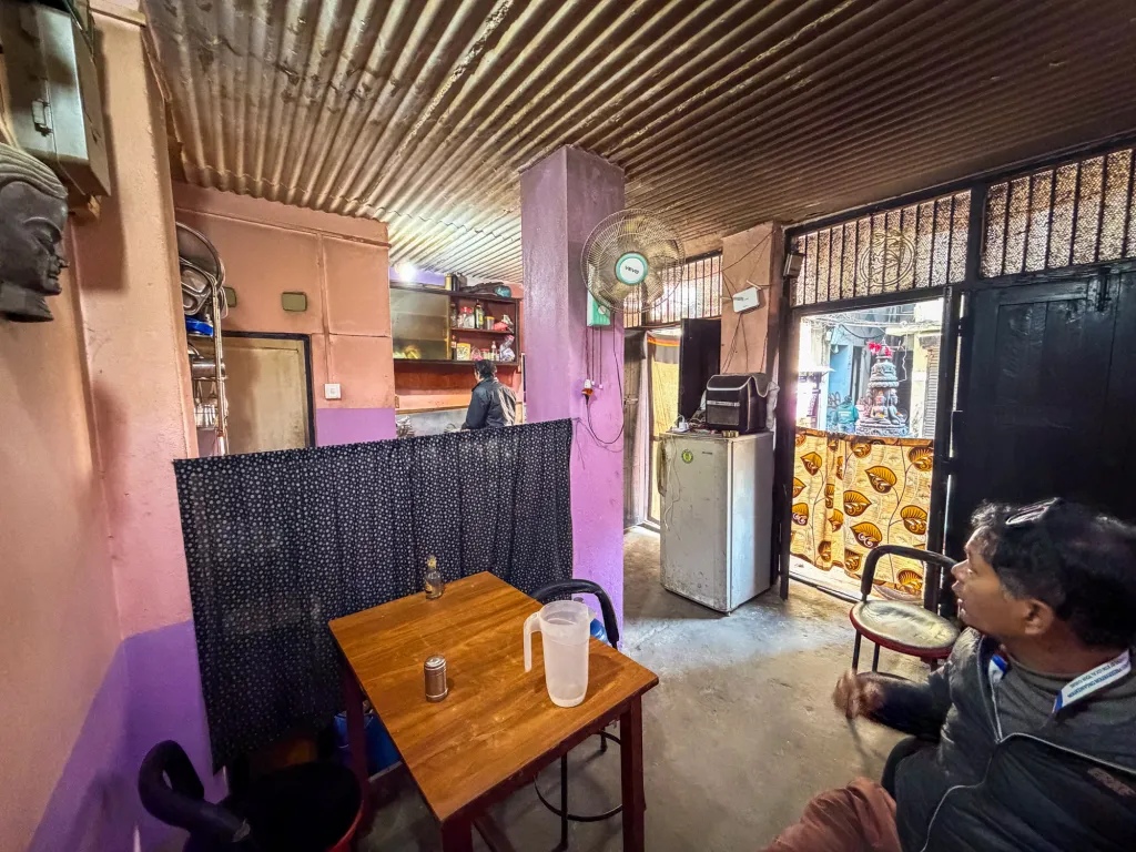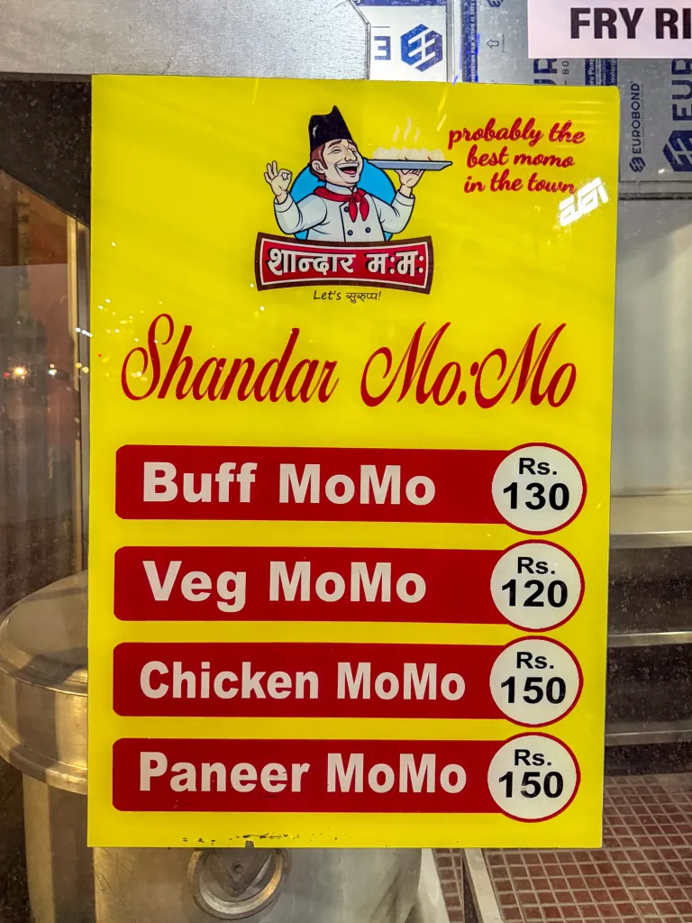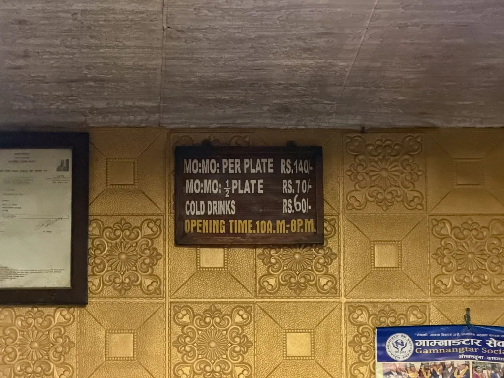 パタン・ダルバール広場のすぐ近く、マンガルバザールにある「Narayan dai ko masangalli ko famous momo」に来た。 名前が非常に長いが、直訳すると「マサンガリ通りのナラヤン兄貴の有名なモモ」。本店はカトマンズの路地裏にあるが、ここはパタンの支店だ。結構な店舗数があり、ネパールで成功したフランチャイズの一つと言える。