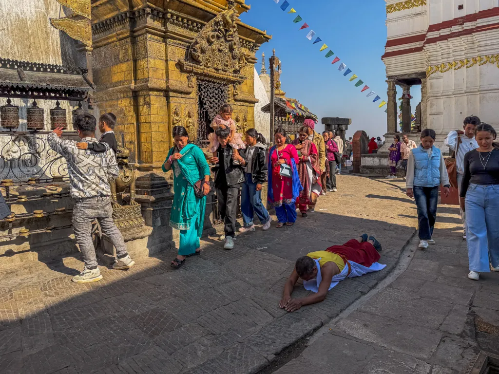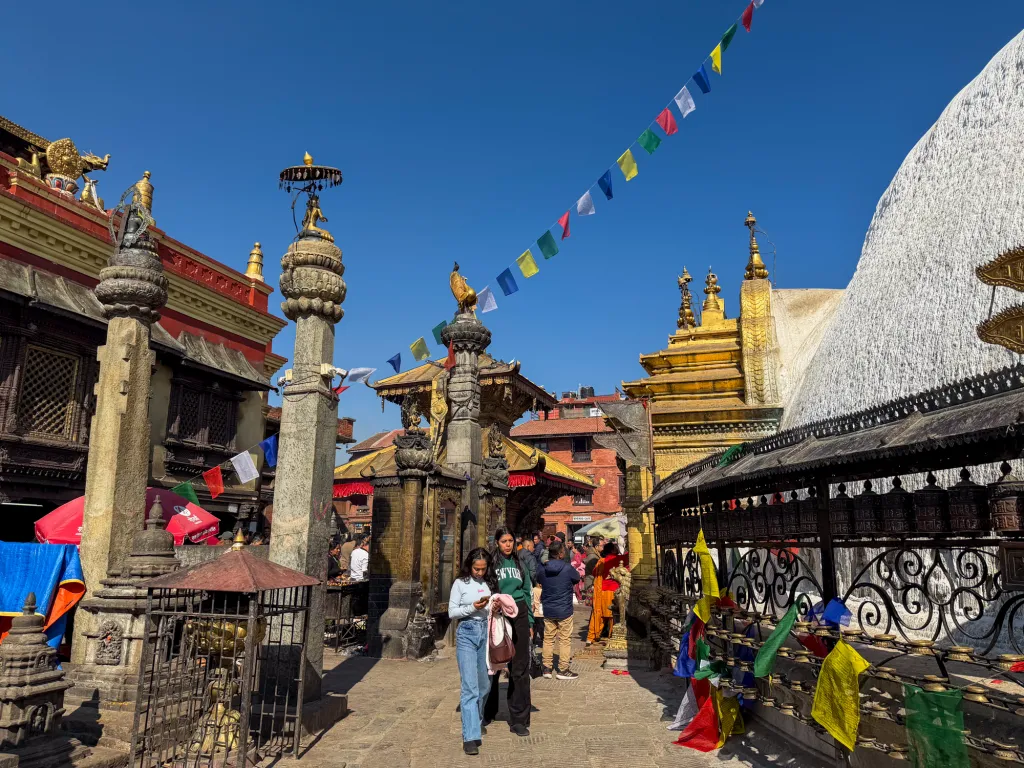 境内は時計回りに巡るのが基本でマニ車を回し、旗が風に鳴る音を聞き、線香やバターランプの匂いの中を歩く。僧侶だけの場所ではなく、家族連れや商いの人も多かった。仏教だけで閉じず、ヒンドゥーの要素も自然に混ざる。境界より生活が前に出るのがネパール(カトマンズ文化)らしい。