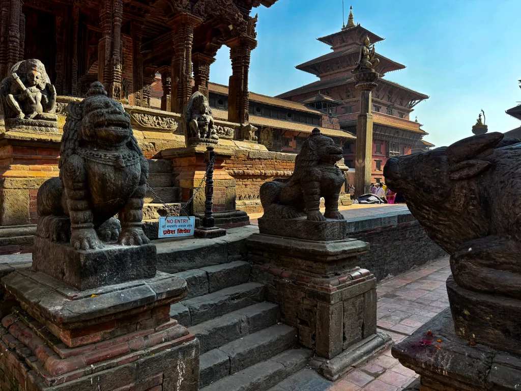 こうして、兄弟や親戚同士で国を治めることになった3つの国(カトマンズ、パタン、バクタプル)は、互いに強烈なライバル心を燃やした。この兄弟喧嘩のような競争心が、現在私たちが目にする世界遺産の美しいダルバール広場や寺院群となっている。