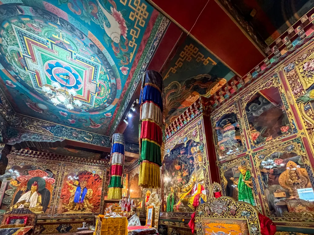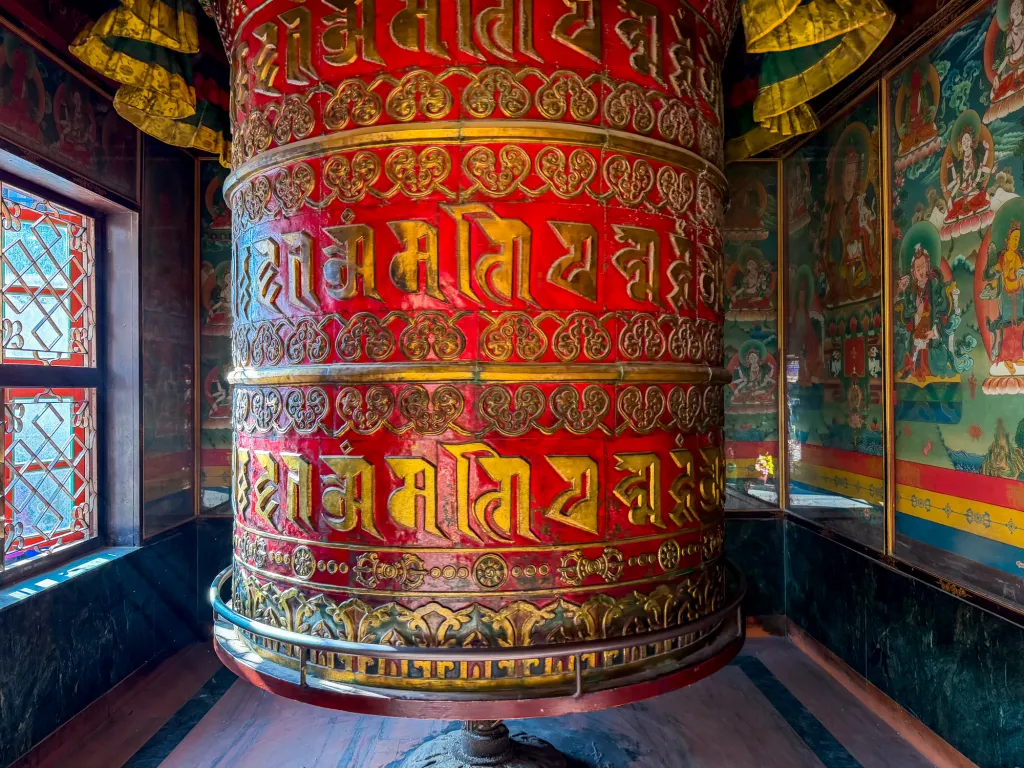 ストゥーパの周囲を人々が時計回りに回る「コルラ」を行っている。五体投地を繰り返す人、マニ車を回しながら歩く人。日本の大乗仏教はどこか静的で内省的だが、ここのチベット仏教は非常に身体的だ。仏塔の上部には「ブッダの知恵の目」が描かれ、四方を見渡している。日本の仏像のように崇める対象というより、向こう側から常に見られているという感覚になる。地・水・火・風・空という宇宙の構成要素を象徴していることを知る。宇宙をかなり意識している。ヒンドゥー的。