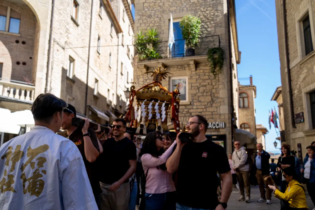 年に一度担がれる理由が、サンマリノで開催される「サンマリノまつり」だ。一般社団法人サンマリノ友好協会が主体となって行う、日・サンマリノ友好のまつり。サンマリノ神社での例大祭とお神輿を中心に、日本に関係するさまざまなイベントが開かれる。