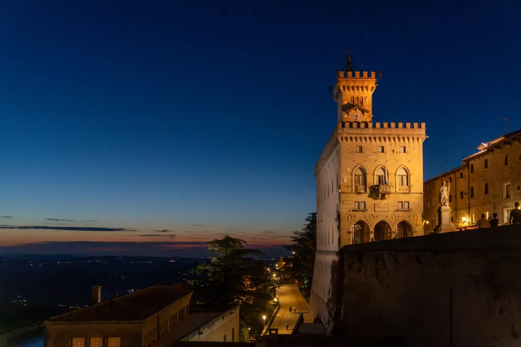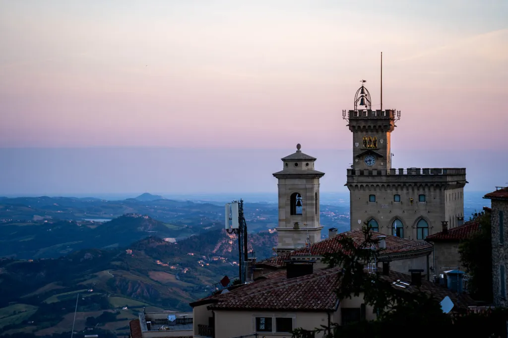 アクセスは正直、良くない。まずはイタリアのボローニャへ行くのが一般的で、そこから鉄道や高速バスでリミニへ(1〜2時間)。リミニは学生とバカンスでにぎわう街。さらにリミニ駅からバスでサンマリノ旧市街へ(約1時間)。日本からなら、乗り継ぎを含めて20時間は見ておきたい。